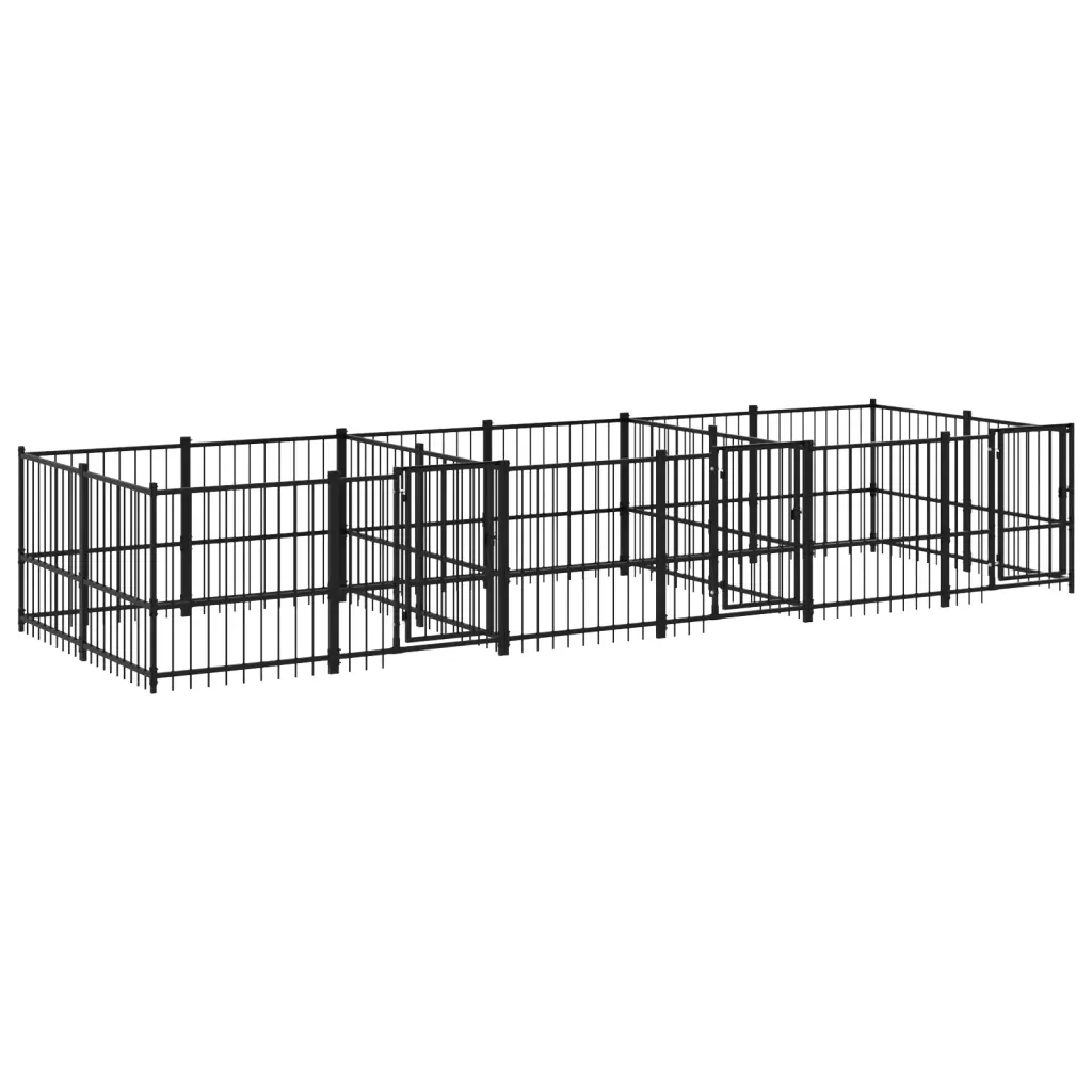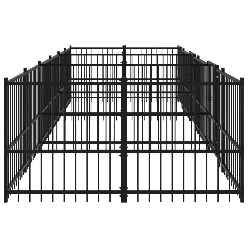 Chenil d’extérieur en acier noir pour chien – Panneaux à barreaux – 582 x 193,5 x 100 cm – 11 m²